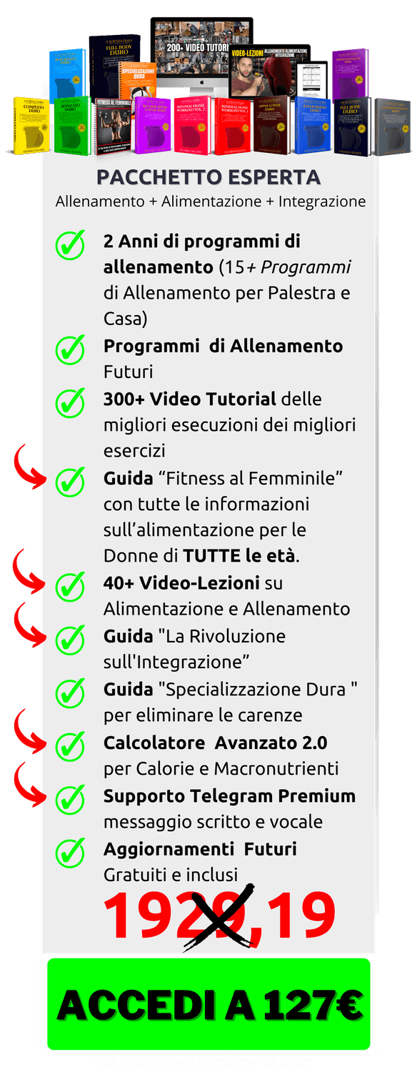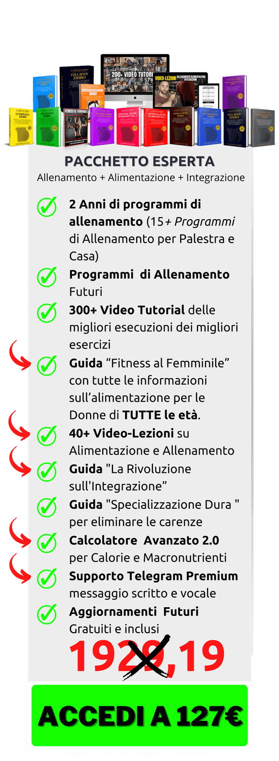 ESATTO, accedendo ora avrai accesso GRATUITO a tutte le guide e a tutti i programmi di allenamento che aggiungerò in futuro.