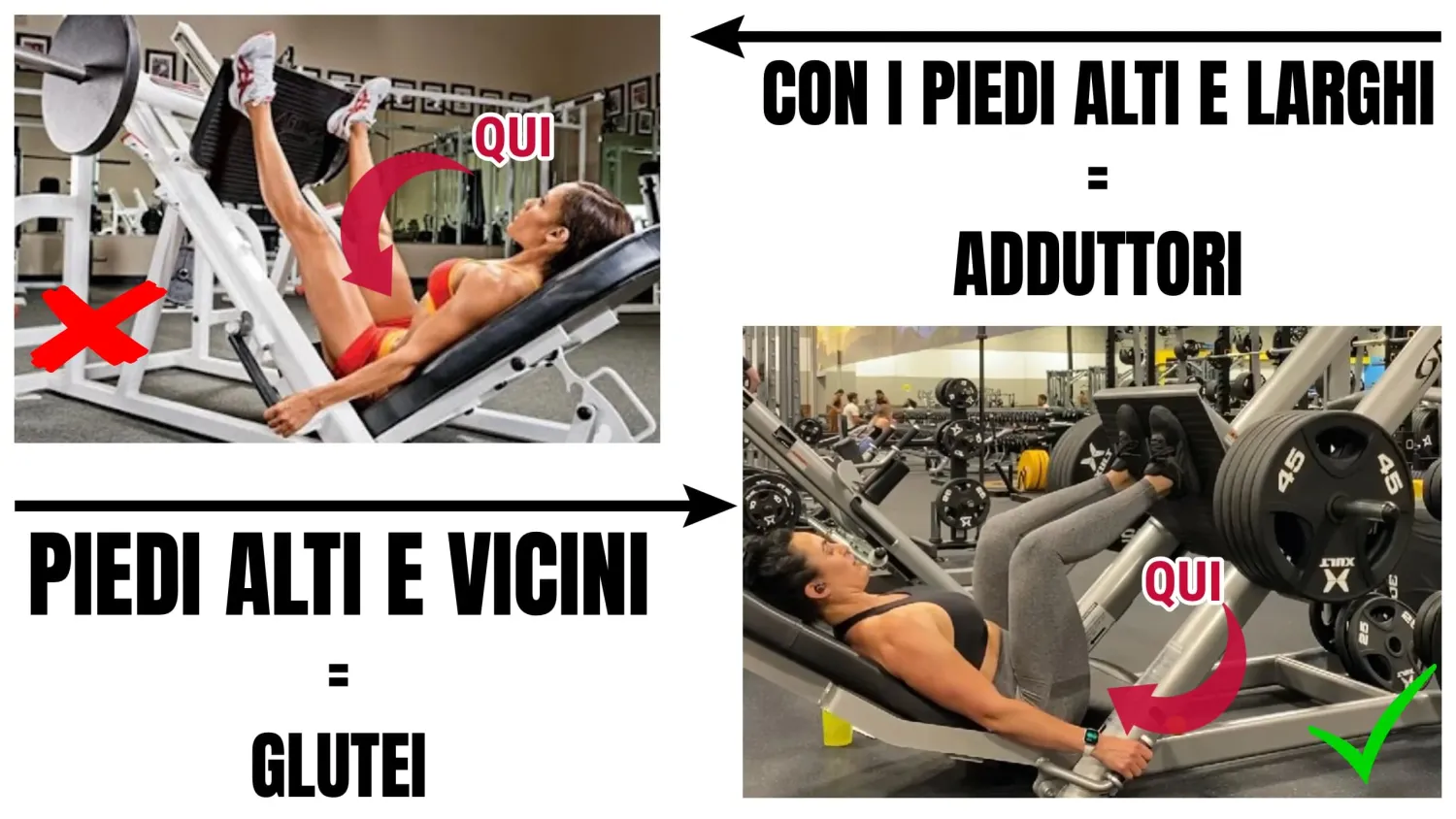 Oltre a ciò però la leg press fatta in questo modo toppa alla grande per i glutei, anche per un altro motivo.