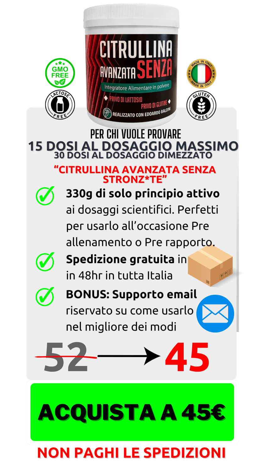 Il fatto che la Citrullina Avanzata Senza Stronz*te sia prodotta manualmente ti garantisce di assumere un vero e proprio 💎 Gioiellino dell'Integrazione.