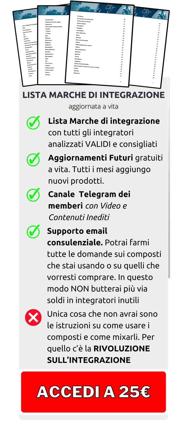 RISPOSTA: Sì! Questo è l'unico metodo per conoscere i brand di integrazione che consiglio. NO non sono affiliato/sponsorizzato da nessuno.