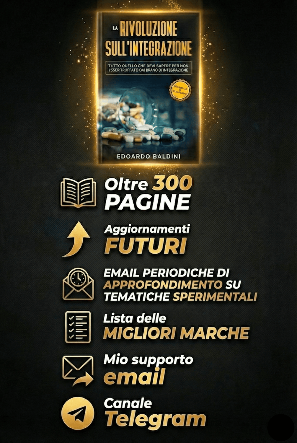 Ovviamente questi sono solo alcuni degli argomenti trattati. Per esempio andremo anche a capire come analizzare un brand di integratori valido da uno non valido (Whey, Omega3, Multivitaminico, Creatina etc...)