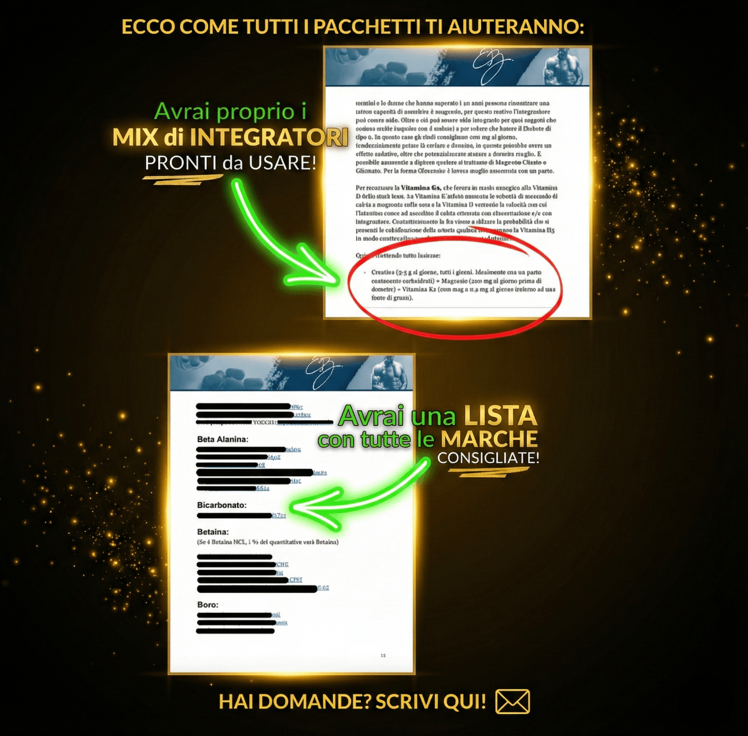 Oltre 300 Pagine di informazioni sugli integratori provati scientificamente e tutti i mix che è possibile fare.